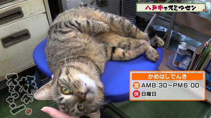 続いて立ち寄ったのは、町の電気店です。迎えたくれたのは、2匹の猫!