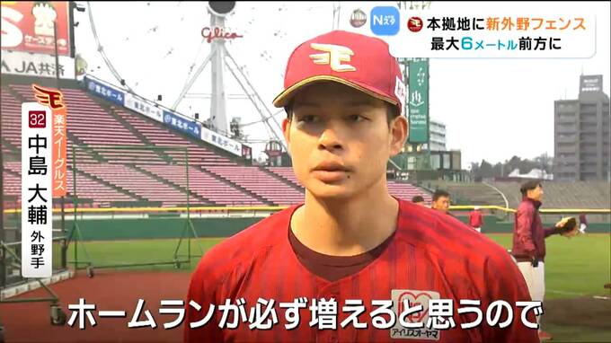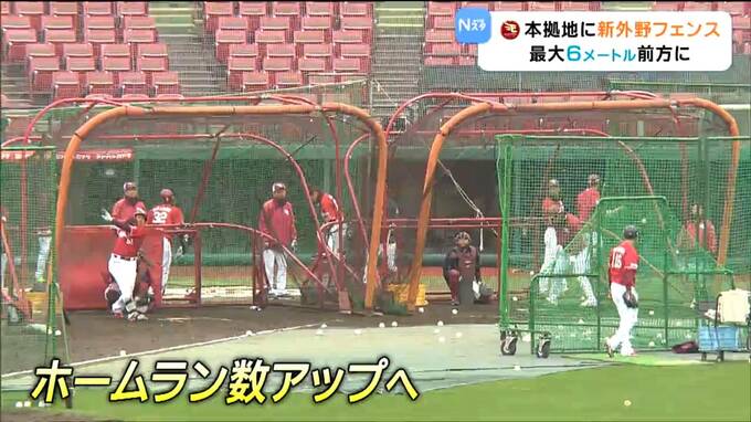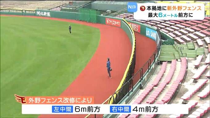 今回、大きく変わる外野フェンスは左中間が従来より6メートル前方の110メートルとなり、右中間も4メートル前方に。フェンスが前に出ることでホームランが出やすくなり昨シーズン、12球団最少だったチーム本塁打数のアップが期待されます。