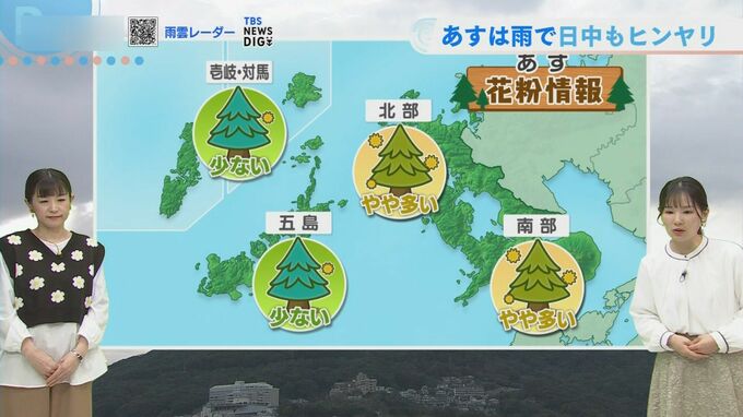 花粉は、雨の影響で飛散量が一時的に抑えられる見通しです。