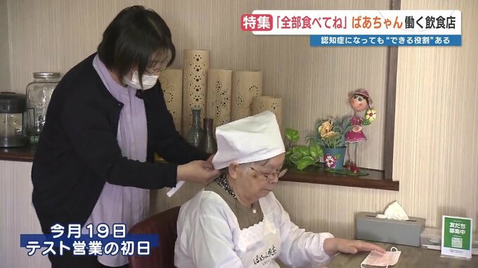 2月19日、テスト営業の初日です。エプロンと三角巾姿を身に着けた、たかもとばあちゃんの姿がありました。