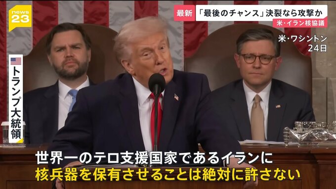 決裂すれば軍事攻撃という局面を迎えています。核開発をめぐって行われたアメリカとイランの協議。トランプ大統領が与える「最後のチャンス」とも報じられるなか、この協議でどのような結論が出るのでしょうか。