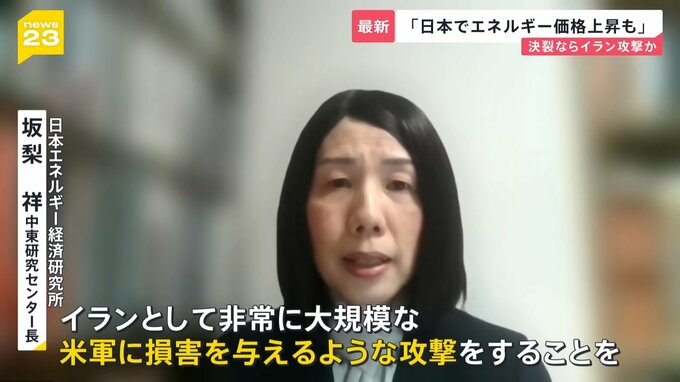 「もしペルシャ湾の出入り口のホルムズ海峡がこの紛争に巻き込まれるとなると、世界的にエネルギー供給に影響が出る可能性がある。日本のエネルギー価格なども上昇することが考えられるが、それらの事態がすでに起こりうる可能性が高まっているということを考えて、対応を考えていかなければいけない」