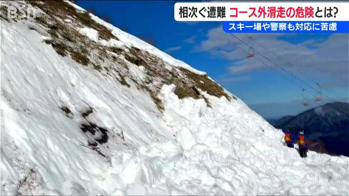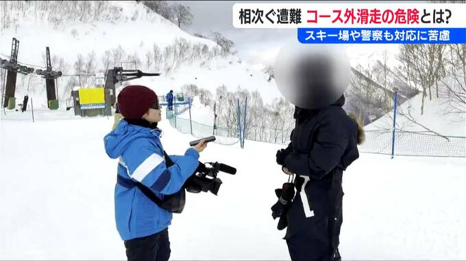新潟県の苗場スキー場でパトロールをしている西銘晴彦アシスタントマネージャーは、スノーボーダーたちが入っていった閉鎖中のエリアには亀裂が入っていて、雪崩が発生する恐れがあるために閉鎖していると警告します。