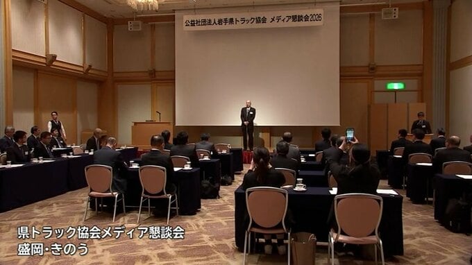 県トラック協会が盛岡市でメディアを対象にした懇談会を開き、ドライバー不足の解消に向けた取り組みや課題を報告しました。