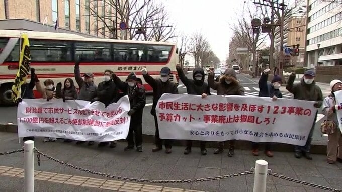 盛岡市など8つの市と町のごみを処理する広域ごみ処理施設整備の撤回を求めて、市民団体が27日、街頭でアピールしました。(街宣活動)「ごみ処理広域化こそ真っ先に見直しの対象にするべきです」盛岡市役所前でア…