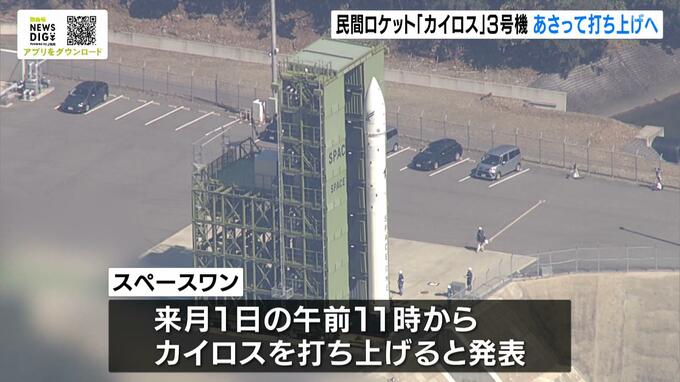和歌山県串本町で打ち上げが延期されていた民間ロケット「カイロス」3号機が来月1日に打ち上げられることが決まりました。 民間ロケット会社の「スペースワン」によりますと、カイロス3号機は、今月25日に打…