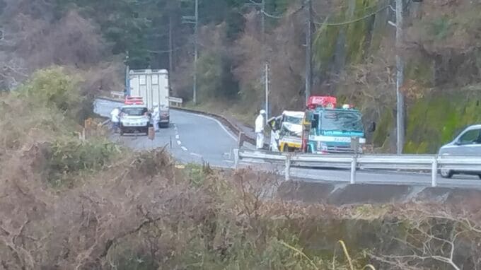 【速報】総社市の県道でトレーラーと車が衝突 女性が救急搬送【岡山】