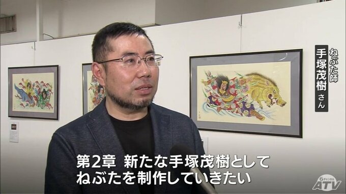 ねぶた師・手塚茂樹さんの歩みを振り返る原画展 青森市の百貨店で開催 今後は独立で「第2章、新たな手塚茂樹としてのねぶたを制作していきたい」
