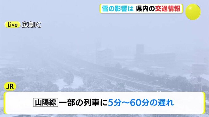 雪による交通への影響です。JRは福塩線の府中~三次が終日で運転取りやめとなっています。芸備線も志和口と東城の間が終日運転取りやめです。山陽線では一部の列車に5分から60分の遅れが出ています。高速道路は中国…