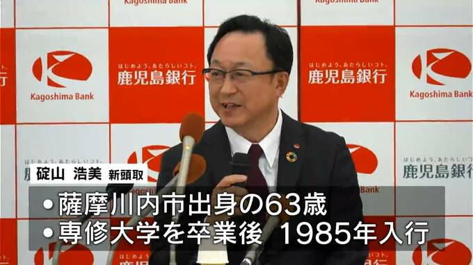 碇山新頭取は、薩摩川内市出身の63歳で、専修大学を卒業後、1985年鹿児島銀行に入行。卸本町支店長や、融資部長などを歴任し、2024年4月から、副頭取を務めています。