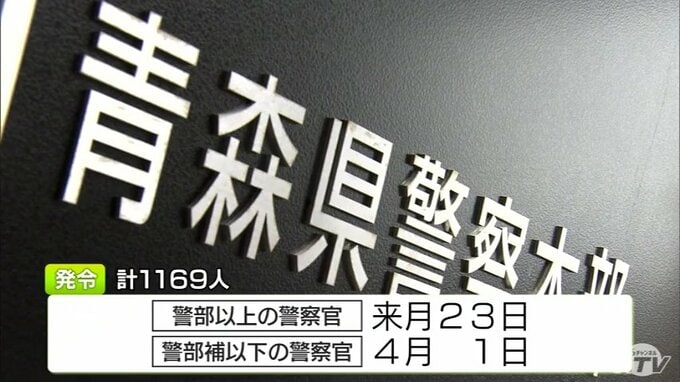 県警の人事異動の規模は警察官と行政職員合わせて1169人で、発令は警部以上の警察官が3月23日、警部補以下の警察官が4月1日です。