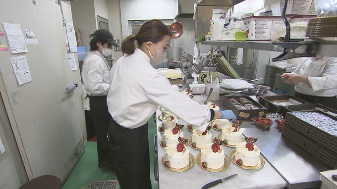 こちらのお店では、23日からの3日間でおよそ200個のクリスマスケーキの注文があり、朝早くからスタッフ総動員でケーキ作りをしていました。