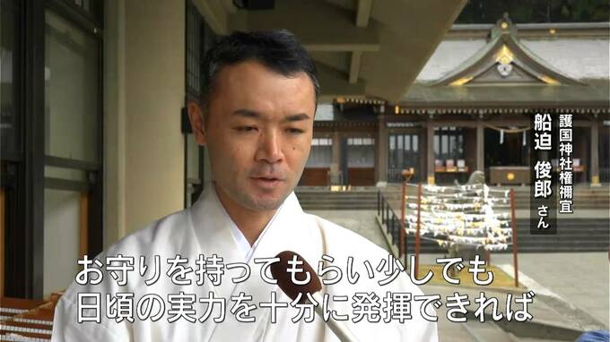 (護国神社権禰宜 船迫俊郎さん)「受験生はプレッシャーのかかる場面があると思うが、お守りを持ってもらい、少しでも日頃の実力を十分に発揮できれば」