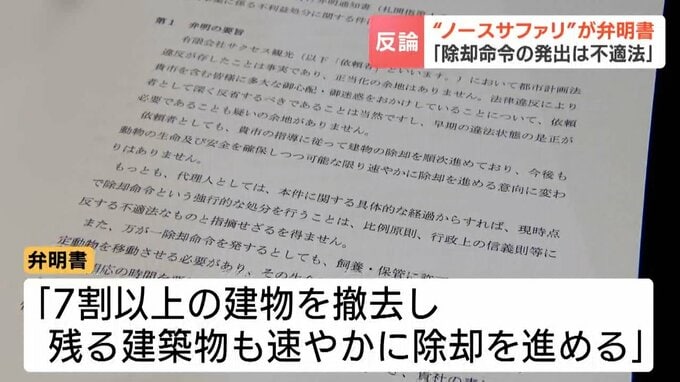 弁明書でノースサファリサッポロの運営会社は、これまでに7割以上の建物を撤去し、残る建築物についても速やかに除却を進めるため、除却命令を発出する必要性がなく、不適法であると主張しました。