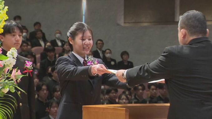 卒業生374人が出席し、式では代表に卒業証書が手渡されたほか、学業や部活動で優秀な成績をおさめた生徒に表彰状が贈られました。