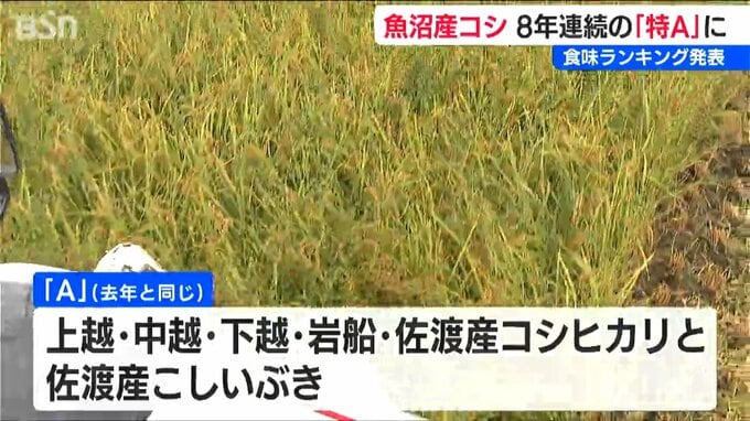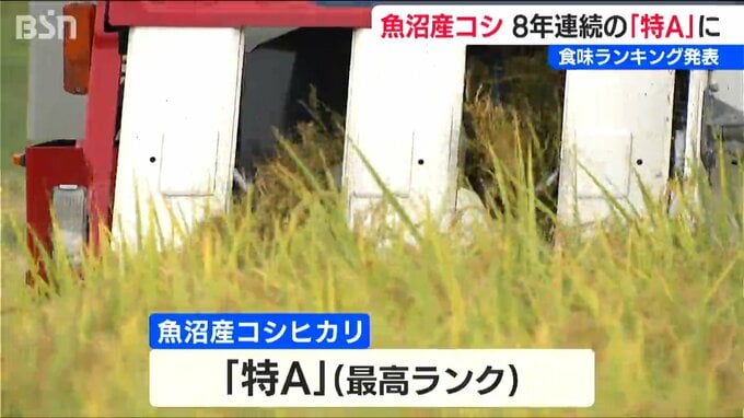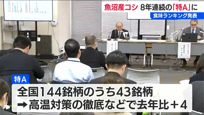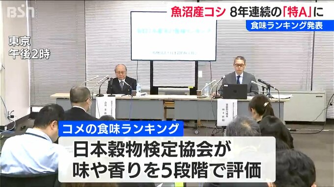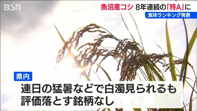 去年作られたコメの味や香りを審査する「食味ランキング」が発表され、新潟県内では魚沼産コシヒカリが8年連続で、最高の評価「特A」を獲得しました。
