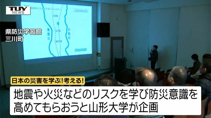 この防災授業は、地震や火災などのリスクを学び防災意識を高めてもらおうと山形大学が企画したものです。