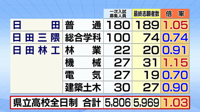 大分県立高校入試2026最終志願倍率一覧 最高倍率は大分舞鶴 次いで大分豊府、大分上野丘【全校・全学科の出願倍率一覧掲載】