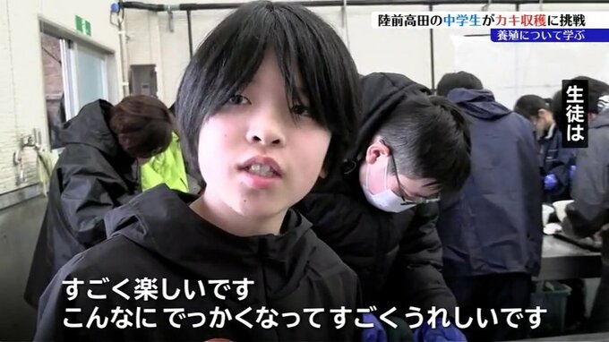 生徒たちはカキを収穫するまでの過程について学び、ふるさとの産業への誇りと、豊かな海の恵みを実感していました。