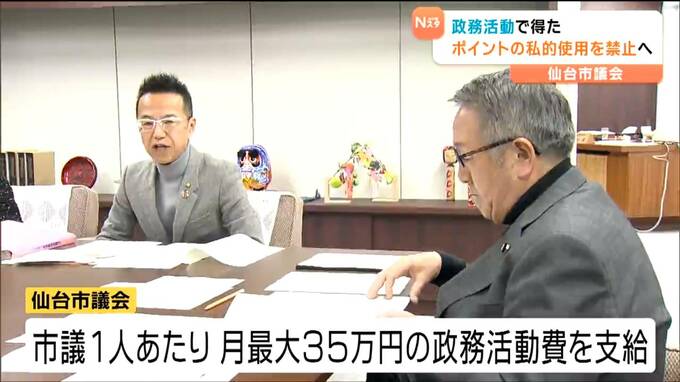 仙台市議会の政務活動費に関する検討会議が検討結果をまとめ、クレジットカードなどのポイントの私的な使用を禁止する、新たなルールの案を議長に報告しました。