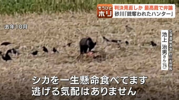 【猟銃許可取り消し訴訟】判決見直しか最高裁弁論、原告ハンター「汚名返上し安心して活動できるように」被告の北海道側「危険性を過小評価することは許されない」 北海道放送 2026年2月27日(金) 19:00 国内 猟銃を所持せず7年間、毎日パトロール 池上さんは猟銃がない7年間も、パトロールを毎日続けてきました。 池上治男さん 「シカを一生懸命食べてます。逃げる気配はありません。?箱わなクマノイズ」 出没があれば、ほぼ全ての現場に駆けつけます。
