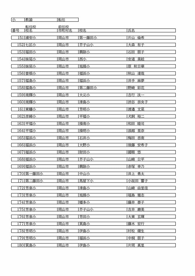 【岡山市教職員】人事異動2026(令和8年度)速報「あの先生は、どこへ?」公立小中高校など教職員人事異動【小学校・名簿一覧掲載・検索】 RSK山陽放送 2026年3月26日(木) 09:01 国内 教諭 【名簿画像】【岡山市立小学校】【岡山市立中学校】【岡山市立高校/義務教育】 【名簿画像】【岡山市立小学校】【岡山市立中学校】【岡山市立高校/義務教育】