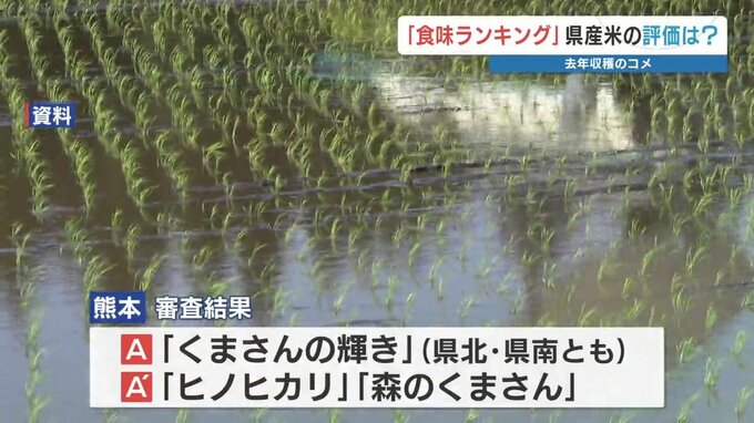 コメ価格は高止まりしていますが、味も気になるところです。去年、全国で収穫されたコメの「食味ランキング」が発表され、熊本県産米の「くまさんの輝き」は、惜しくも「特A」を逃しました。