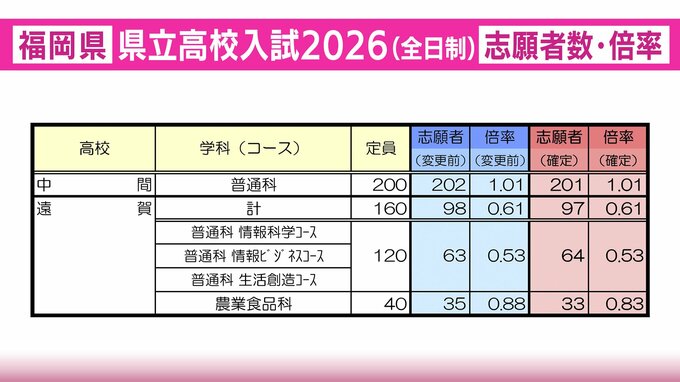 中間・遠賀の志願者数と倍率