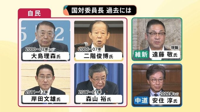 各党に設置されている「国対委員会」ですが、国対委員長を務めてきた人たちには、次のような人がいます。