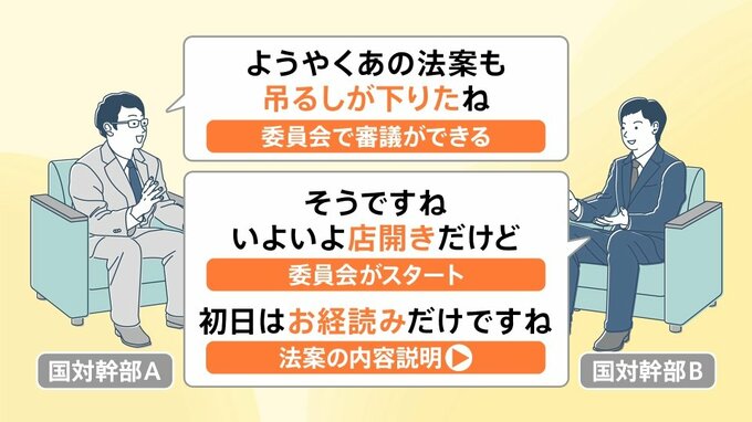 ▼吊るしが下りた=委員会で法案が審議できる