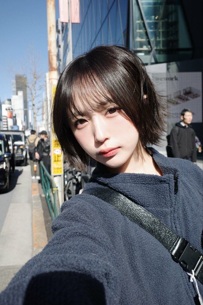 なえなのさんは、陽光あふれる街中で、チャコールグレーのフリースのジャケットに黒のレザーのバッグをたすき掛けにして自撮りした写真を投稿。きりっとした表情で「はじめて花粉の注射打ってきた」とテキストしています。
