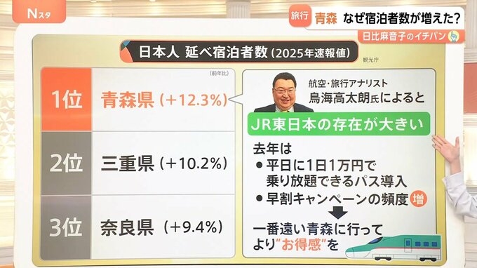 宿泊者数が増加した要因について、航空・旅行アナリストの鳥海高太朗氏は「JR東日本の存在が大きいのでは」と指摘します。