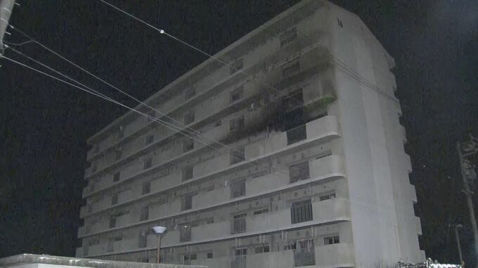消防車など8台が出て、火はおよそ1時間半後に消し止められましたが、鉄筋8階建ての県営住宅の5階の1室が焼けました。