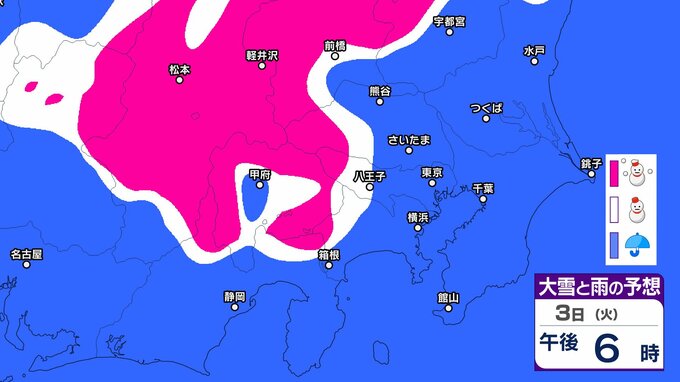 【3月に雪?】東京・神奈川・千葉・埼玉・茨城・栃木・群馬・山梨・長野 関東エリア28日(土)~3月5日(木)3時間ごとの雪雨シミュレーション【気象庁/28日現在】 RSK山陽放送 2026年2月28日(土) 10:35 国内 天気 3月3日(火) 2月28日~3月5日までの雪雨シミュレーション画像 2月28日~3月5日までの雪雨シミュレーション画像