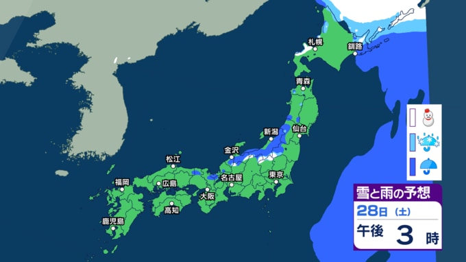 【3月に雪?】東京・神奈川・千葉・埼玉・茨城・栃木・群馬・山梨・長野 関東エリア28日(土)~3月5日(木)3時間ごとの雪雨シミュレーション【気象庁/28日現在】|TBS NEWS DIG