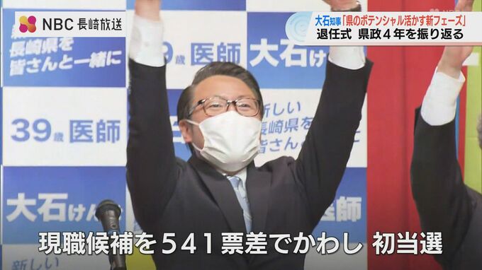 大石賢吾知事は4年前知事選に初挑戦し、現職候補を541票差でかわし初当選しました。