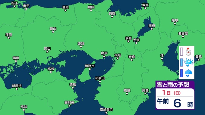 【関西の天気 どうなる?】大阪・京都・兵庫・滋賀・奈良・和歌山 28日(土)~3月5日(木)近畿地方3時間ごとの雪雨シミュレーション 3日ひな祭りの日は広範囲で雨模様【気象庁 28日現在】 RSK山陽放送 2026年2月28日(土) 16:23 国内 3月1日(日) 気象庁によりますと、3月1日の近畿地方は、高気圧に覆われておおむね晴れるということです。 【画像】2月28日~3月5日 雪雨シミュレーション 【画像】2月28日~3月5日 雪雨シミュレーション