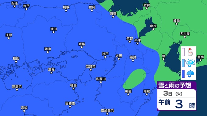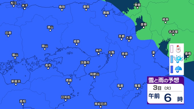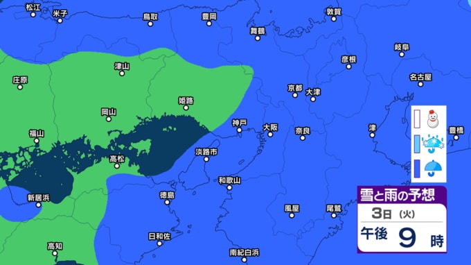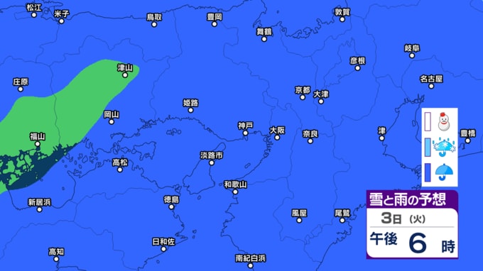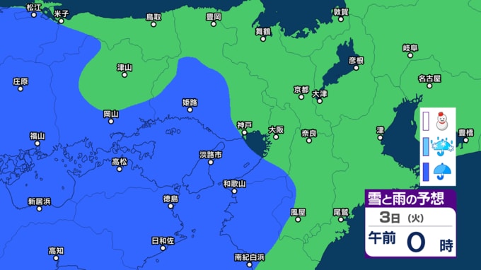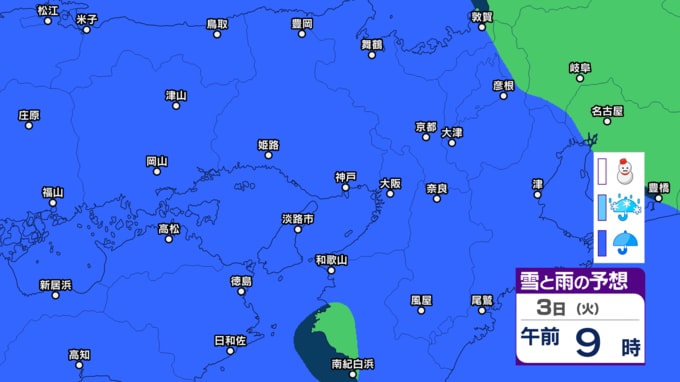 【関西の天気 どうなる?】大阪・京都・兵庫・滋賀・奈良・和歌山 28日(土)~3月5日(木)近畿地方3時間ごとの雪雨シミュレーション 3日ひな祭りの日は広範囲で雨模様【気象庁 28日現在】 RSK山陽放送 2026年2月28日(土) 16:23 国内 3日(火) 【画像】2月28日~3月5日 雪雨シミュレーション 【画像】2月28日~3月5日 雪雨シミュレーション