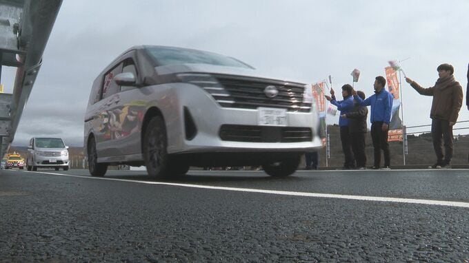 北海道の太平洋側の苫小牧市と浦河町を結ぶ日高自動車道の日高厚賀インターと新冠インターの間9.1キロメートルが、28日開通しました。開通に先立ち、新冠町で金子恭之国土交通大臣が出席して記念式典が開かれ、テ…