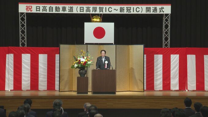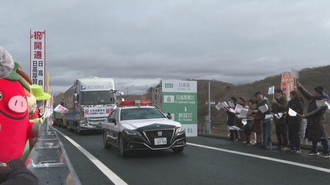 北海道の太平洋側の苫小牧市と浦河町を結ぶ日高自動車道の日高厚賀インターと新冠インターの間9.1キロメートルが、28日開通しました。