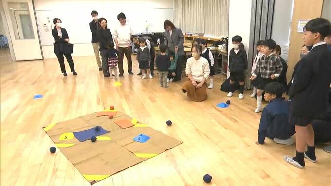 児童約20人が考案し、倉敷市の大和被服と共同で作ったスポーツ、「レスキューボッチャ」が紹介されました。