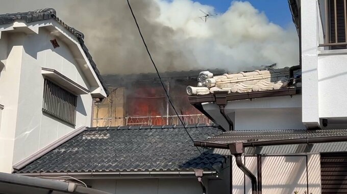 (記者)「アパートの2回からオレンジ色の炎が上がっているのが見えます。そして、黒い煙が激しく立ち上っています」