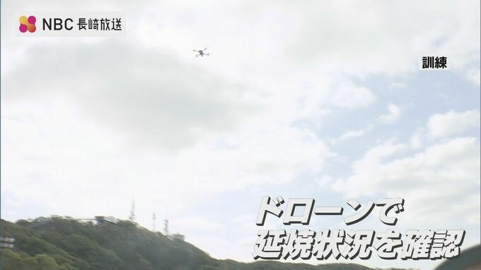 訓練は、長崎市消防局が、林野火災発生時に延焼拡大を防ぎ、早期終息を図るため実施し、稲佐山公園方向に延焼・拡大している想定で行いました。