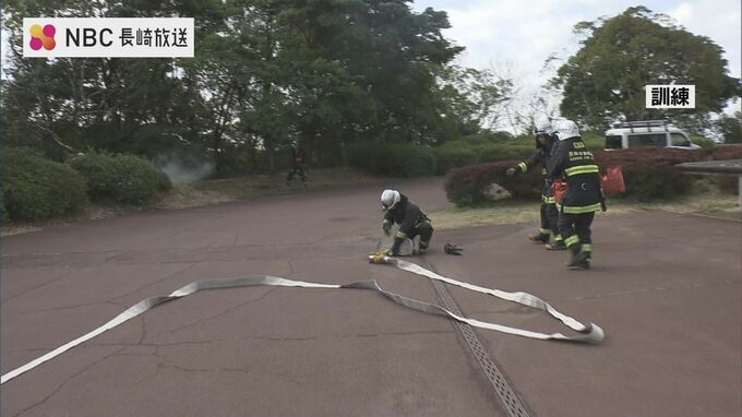 3月1日~の「春の火災予防運動」を前に、長崎市の稲佐山で、2月28日、林野火災を想定した初動対応訓練が行われました。
