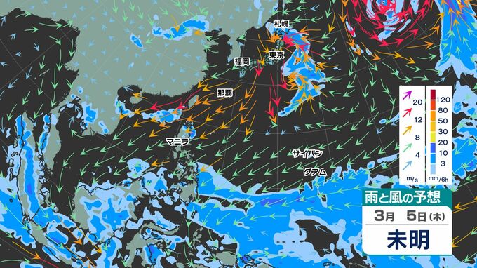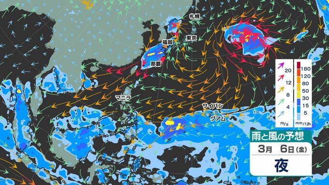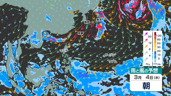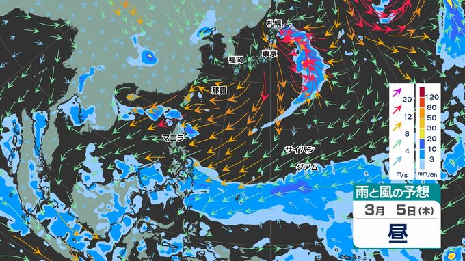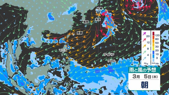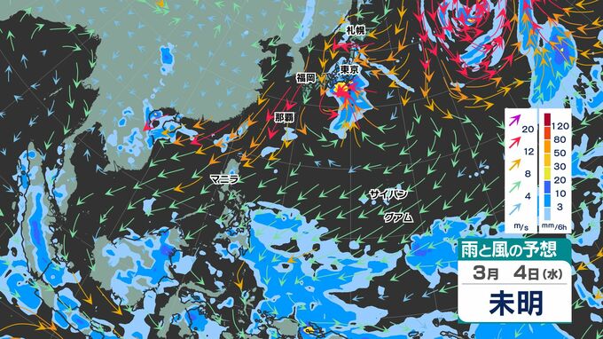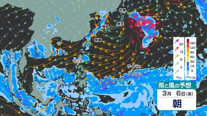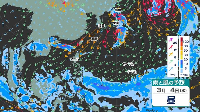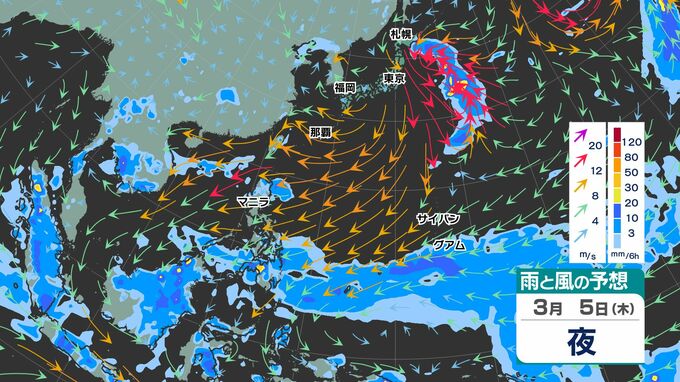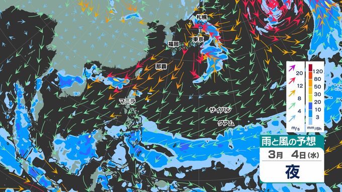 【反時計回りの「渦」】南の海上の「渦」は北上の気配【雨風シミュレーション3月1日(日)~11日(水)】日本は3月3日ごろ「寒の戻り」で雪か?