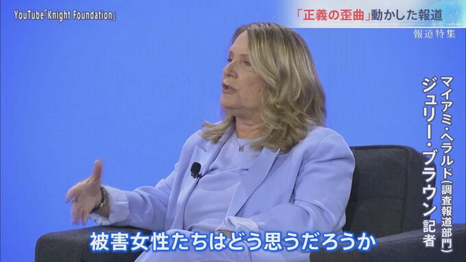 ジュリー・ブラウンは60人を探し出しました。8人が取材に応じ、最終的に4人が実名で証言しました。被害者が声を上げるきっかけになったことを誇りに思います」