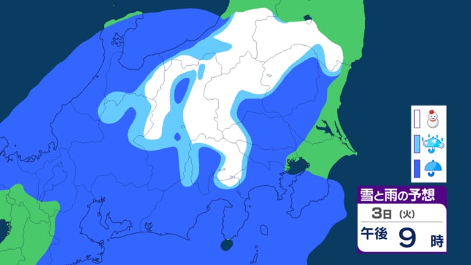 3日(火)は関東で雪の可能性