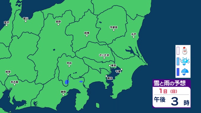 3日(火)は広く「雨か雪」が予想され、夜には関東地方南部でも「雪」の予想が出てきます。