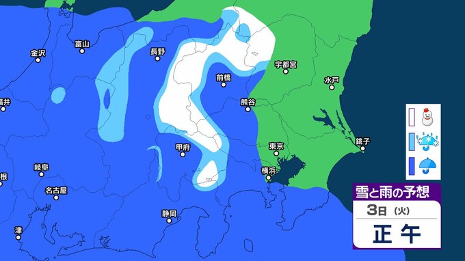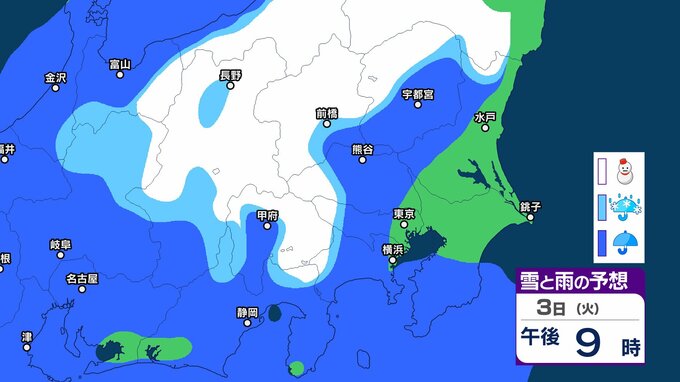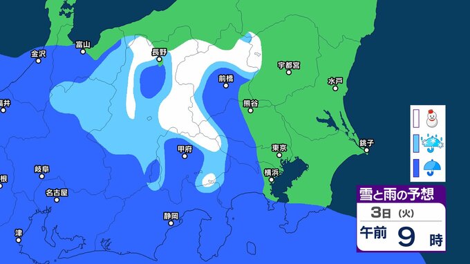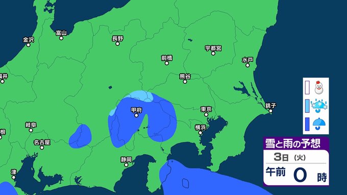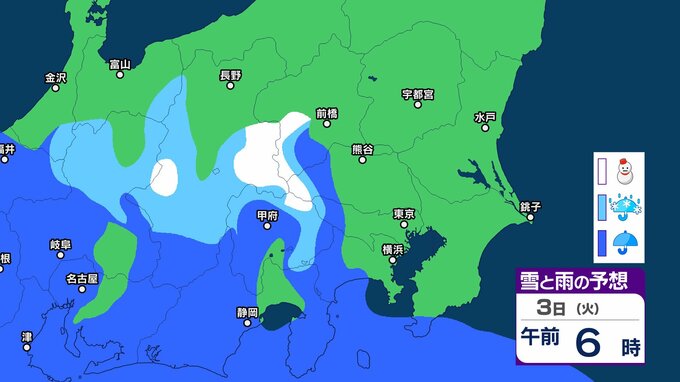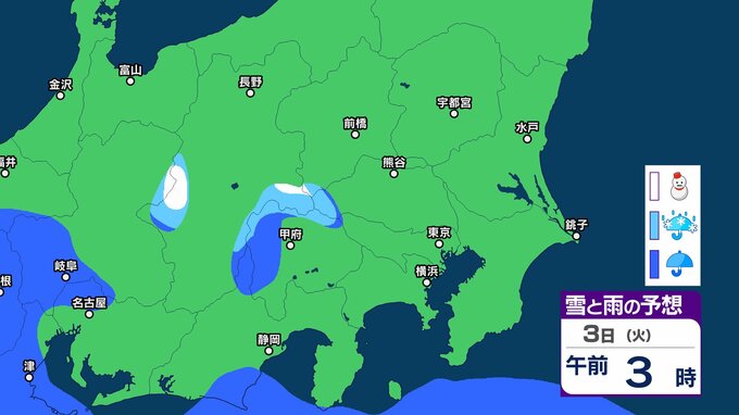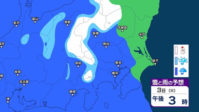 【3月に雪?】東京・神奈川・千葉・埼玉・茨城・栃木・群馬・山梨・長野 関東エリア 1日(日)~6日(金)3時間ごとの雪雨シミュレーション 3日(火)頃から天気崩れる予想【気象庁/1日午前11時更新】 3時間前