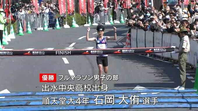 フルマラソン男子の部で初優勝したのは、出水中央高校出身で今年の箱根駅伝でも活躍した順天堂大学4年・石岡大侑選手でした。
